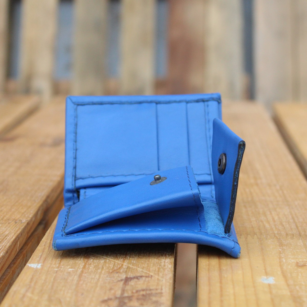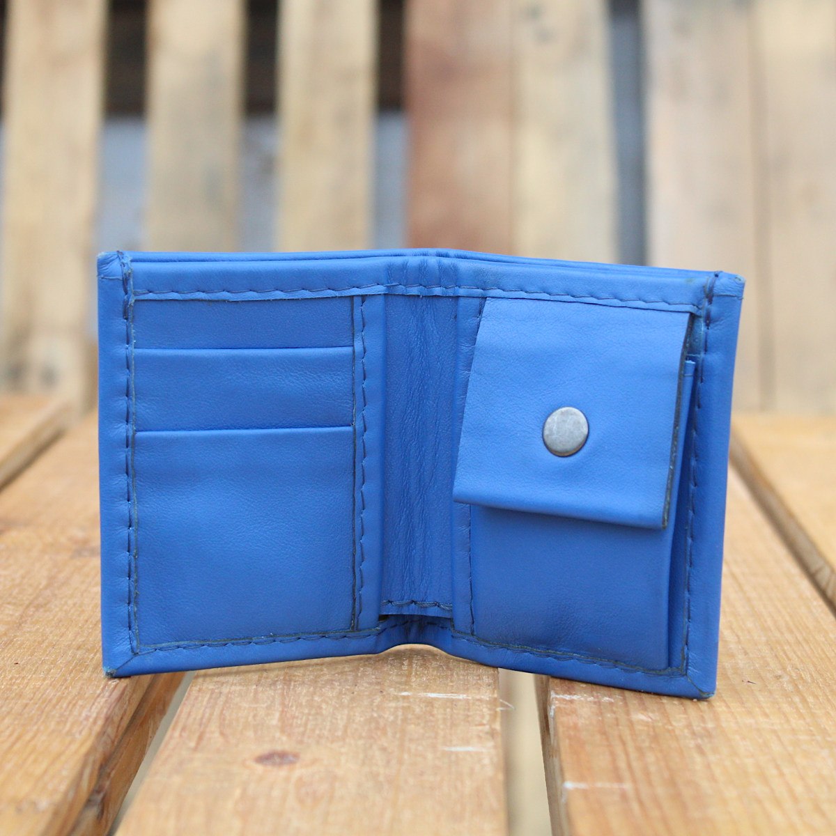 Вътрешното разпределение включва две отделения за карти, монетник с капак и централно отделение за банкноти или бележки. Портфейлът е лек, удобен и същевременно здрав – създаден да издържи на ежедневна употреба.