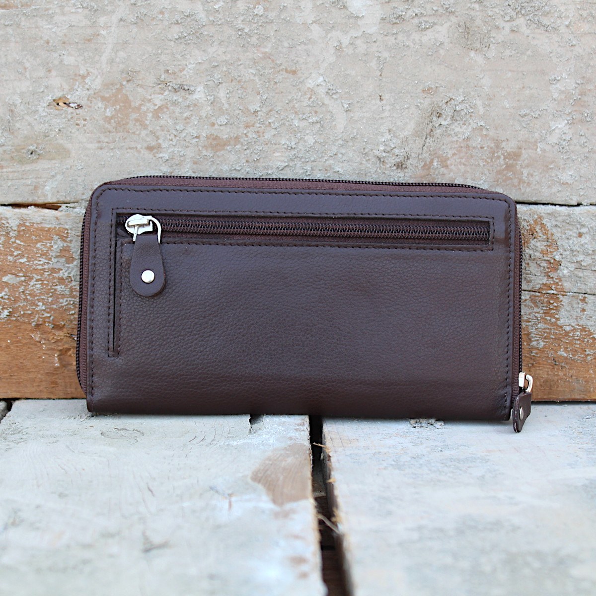 Представяме ви нашето голямо дамско кожено портмоне – изискан и практичен аксесоар, създаден за модерната жена, която цени качеството, стила и организацията. Изработено от първокласна италианска телешка кожа в елегантен кафяв цвят с лек шагрен ефект, това портмоне е перфектният избор за подарък или лично удоволствие.